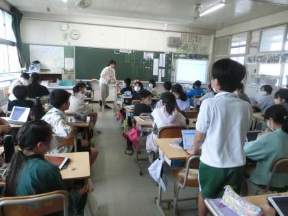 6年生で行われた道徳の授業を他の先生方が見て、授業研究を行いました。「思いやり」をテーマにした意見交流では、たくさんの意見が発表されました。