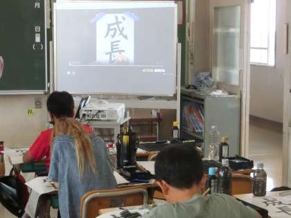 プロジェクターで書き方のお手本の動画が流され、いつでも参考にできるようになっていました。
