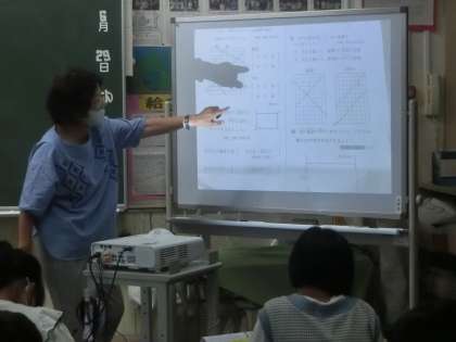 児童たちは、どの問題の解説をやっているのか、どのように考えたらよいのかを大きく提示された答えで確認していました。