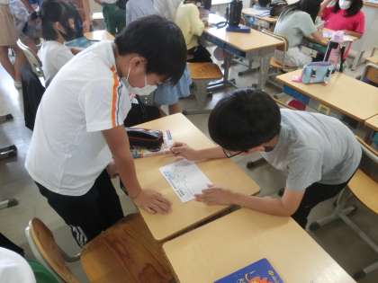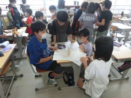 5年生は、明日から野外学習です。教室では、班活動の打ち合わせが着々と進んでいました。しっかりと準備ができていると、活動も充実しますね。