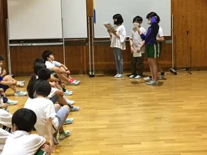 これまでの活動を代表児童がふりかえり、次の活動の目標を伝えました。 【丈夫でたくましい子】