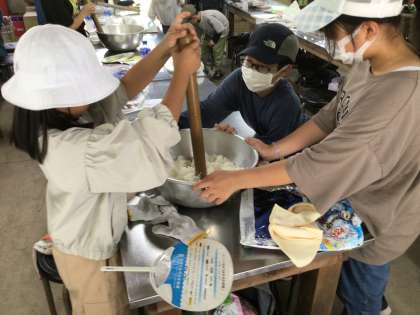 ご飯をついて、もちを作っています。 【丈夫でたくましい子】