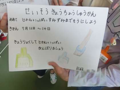 1年生のある学級では、黙って掃除をするのはなぜかについて、話し合っていました。行動の意味を考えて動くことは、主体的な動きにつながります。