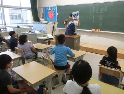 大きな絵本や紙芝居、お話にかかわるぬいぐるみなどを持ってきていただいた学級もありました。