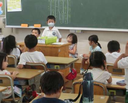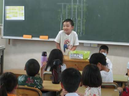 朝の会では、スピーチ活動が行われています。1年生の教室でも、発表者がみんなの前で堂々とスピーチをしていました。このような経験を通して、人前で自分の考えを伝えることに慣れていきます。スピーチの後のあたたかい拍手もうれしかったです。