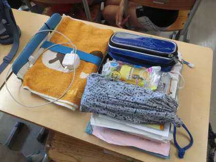 夏休みに持ち帰る用具の忘れ物がないように、整えています。