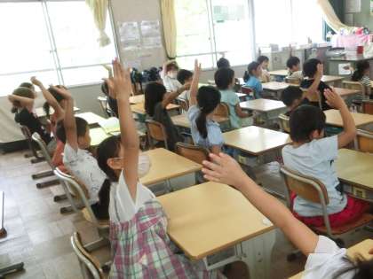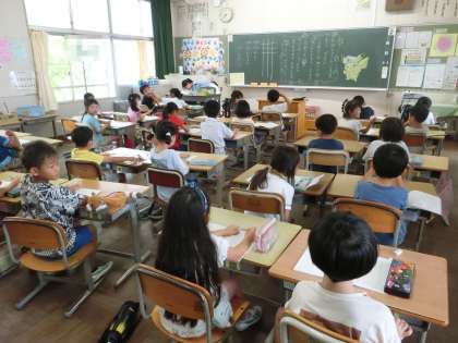 夏休み中の出校日。久しぶりに、児童たちの元気な姿を見ることができました。