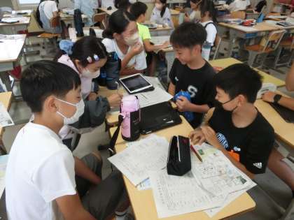 修学旅行に向けて、6年生は班別行動を考えていました。学習用タブレットで、行きたい場所を調べている班もありました。計画を立てるのも旅行の楽しみのひとつですね。