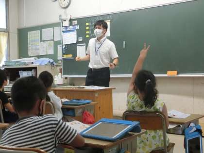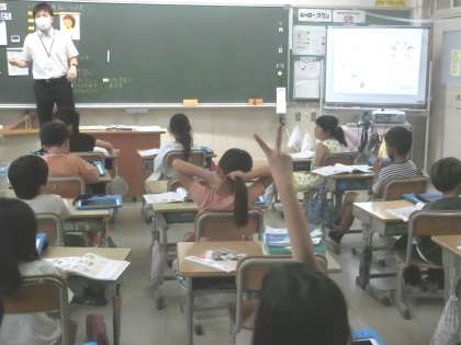 2年生の道徳の授業です。にこにこ名人、小さい子にやさしい名人など、いいところを見つけることができました。いいところを言ってもらえるとうれしいですね。
