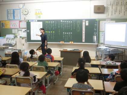 1年生の国語では、おとやようすを表すことばを使った文章を学んでいます。「しゃきしゃき」「じゃりじゃり」「ぽりぽり」「つるつる」など、たくさんの表現が出てきました。