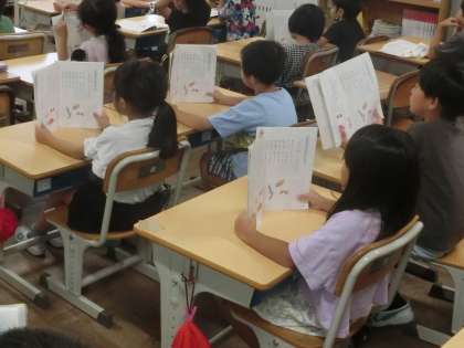 音読するときには教科書を手に持ち、姿勢も正していました。