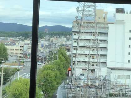 バスの車窓から。伏見桃山城が山の中伏に見えます。秀吉の時代です。 【明るく礼儀正しい子】