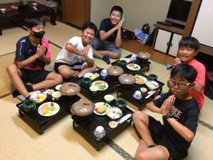 夕食です。各部屋でおいしくいただきました。
