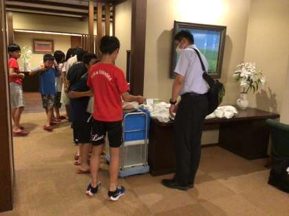 2日目の朝です。部屋長たちが、朝の活動を行なっています。