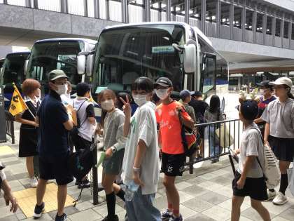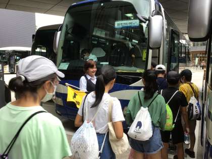 時間通りに集合し、バスに乗って次の目的地に移動します。