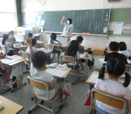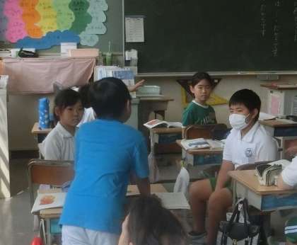 3年生の国語は、「サーカスのライオン」で物語の読み取りを学んでいます。今日の授業では、感想とその理由を発表していました。