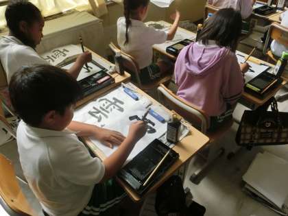 4年生の書写です。今日の授業では、「雲」を書きました。雨かんむりとのバランスを意識して練習をしました。
