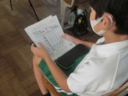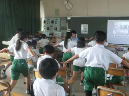 後半は、実技で姿勢エクササイズを行いました。「しせいすくすくシート」も配布しました。家庭でもエクササイズを実践してみてください。正しい姿勢が、脳のはたらきをよくし、健康維持にもつながります。