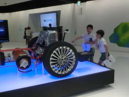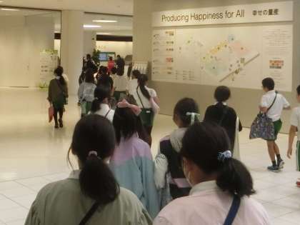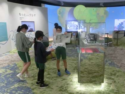 トヨタ会館では、自動車についての最新技術を見学しました。環境にやさしい車づくりの技術も知ることができました。