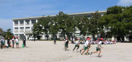 5年生が、徒競走の練習をしています。走順の確認や走るコースの確認もしました。