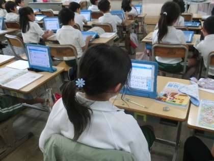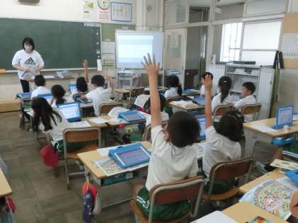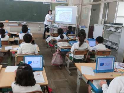 教科書のどの部分を学んでいるかが分かりやすいように、考える場面では学習用タブレットに図が送信されていました。