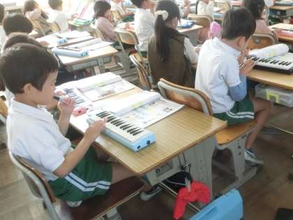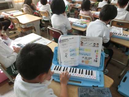 1年生の音楽で鍵盤ハーモニカの演奏をしています。