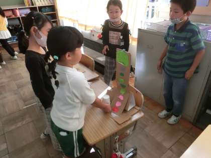 2年生は、この日のためにどんなおもちゃを作るか、遊び方をどのように説明しようかと考えてきました。