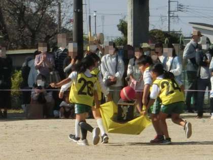 低学年の競技「わっしょい!わっしょい!150祭」です。みんなで協力して、ボールを運びました。