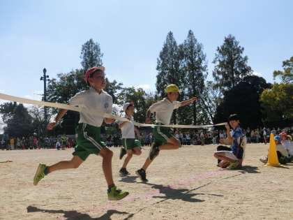 高学年の徒競走です。高学年としてかっこいい姿が見せられるように、力いっぱい走り抜けました。