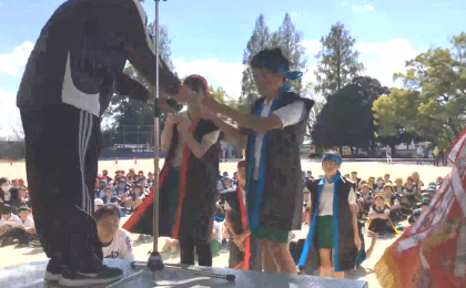 保護者の皆様、来賓の皆様、本日は運動会の応援ありがとうございました。児童が考えた運動会のテーマにあるように、150周年から新時代の竹村小学校を地域・家庭・学校で力を合わせて作っていきます。今後とも、よろしくお願いします。