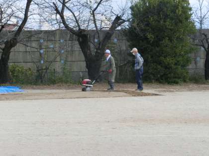 毎週火曜日に、竹ボラさんが学校の整備をしてくださっています。運動場では、砂場の砂をほぐしてくださいました。