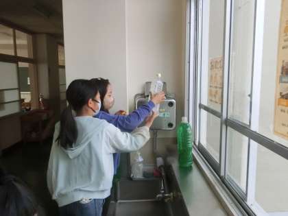 保健委員が竹小タイムに、アルボースの補充を行っています。インフルエンザ対策としても手洗いは有効な予防方法です。全校の健康のための活動をありがとうございます。