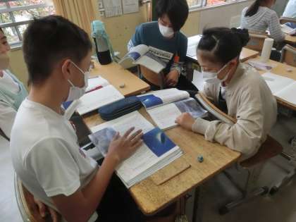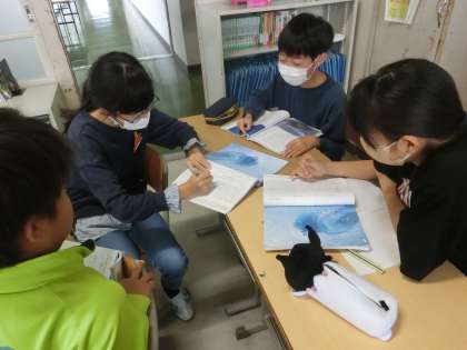 グループ学習で対話的な学びをしています