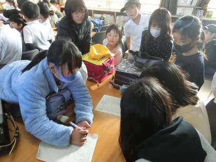 明日から年末の交通安全市民運動が始まります。今日は、通学団の各班で良いところや直したいことを話し合いました。交通事故に合わないように、班で協力していきましょう。