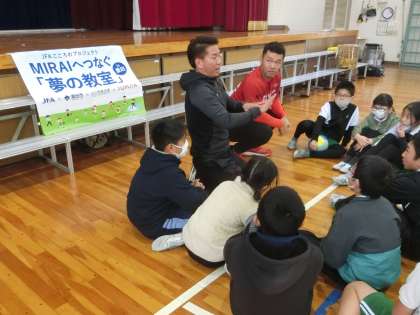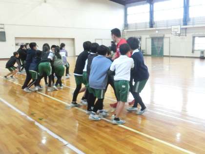 5年生が、JFAこころのプロジェクト「夢の教室」に参加しました。ゲームの時間では、ボールを使ったゲームをクリアするために「仲間と協力することの大切さ」を実感する活動を行いました。