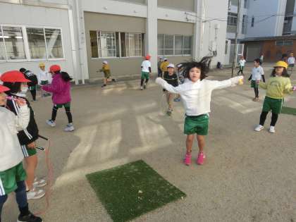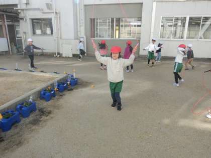 竹小タイムに中庭へ行くと、1年生がなわとびの練習をがんばっていました。後ろとびや交差とびを見せてくれる児童もいました。たくさん練習すると、たくさん飛べるようになりますね。