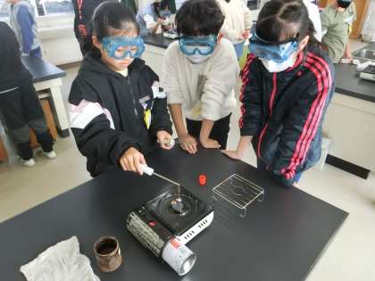 4年生の理科で、金属の体積と温度の関係を実験で調べました。実験の前には、空気や水の性質で学習したことや家庭でフライパンやバーベキューの鉄板を使った経験をもとに予想を発表していました。実験の結果は、予想どおりだったでしょうか。