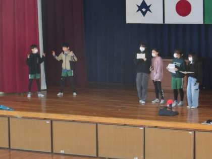6年生の体育委員会の「楽しんで体を動かそう」企画は、カニおにごっこです。最初に体育委員がルールを説明し、おにのカニ役を募集しました。