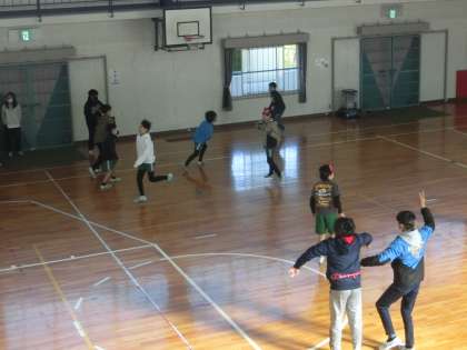 なかなかつかまらないので、途中でコートの大きさを変更したり、おに役のカニを増やしたりするなど、工夫が見られました。
