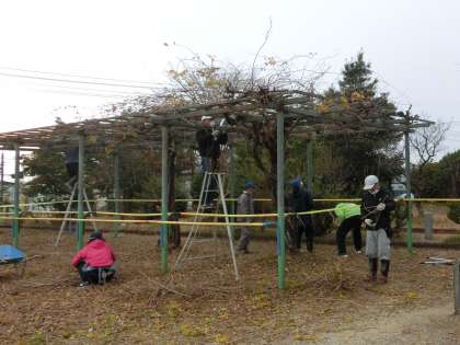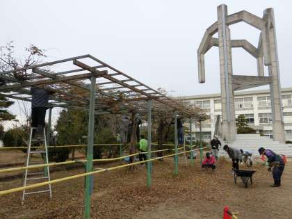竹ボラさんが、毎週火曜日に学校の整備をしてくださっています。今日は、藤棚の手入れをしていただきました。春の藤棚一面に咲く紫色の花を今から楽しみにしています。
