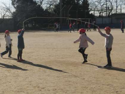 大なわをがんばって跳んでいます