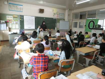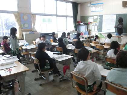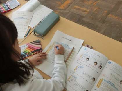 2年生が、九九の表を使って学習しています。同じ答えになるかけ算を見つけて発表していました。かけ算は、生活でもよく使います。九九をしっかりマスターしておきましょう。