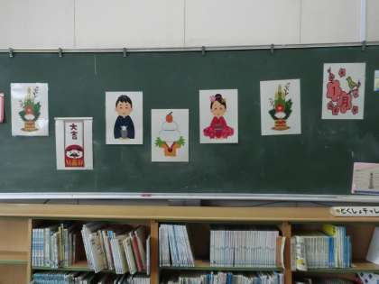 図書ボラさんが、図書館の掲示物を毎月、変えてくださっています。1月の図書館は、新年にふさわしい掲示物で飾られています。図書ボラさん、いつもありがとうございます。