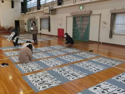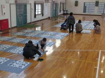 ボランティアの保護者の方のお力をお借りして、校内書き初め展の準備をしました。多くの作品を手際よく、展示していただきました。