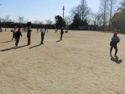 6年生の体育で、Tボールの練習をしています。今日は、打撃と守備の練習をしていました。