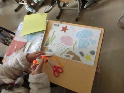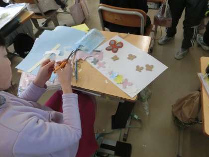 3年生が、紙版画づくりをしています。この授業では、ぎざぎざの紙や凸凹のある紙を使って原画をつくっています。どんな版画が出来上がるのか、楽しみです。