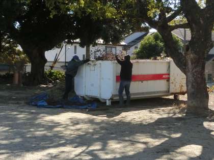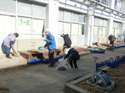 竹ボラさんに、緑のカーテンを作った花壇の整備や樹木の剪定をしてくださった枝の処分をしていただきました。ありがとうございます。