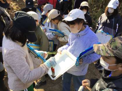 5年生が、先週と今週に2クラス合同で市役所環境政策課主催の「森と川の学習プログラム」に参加し、豊田市自然観察の森と篭川付近の観察をしました。