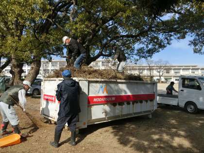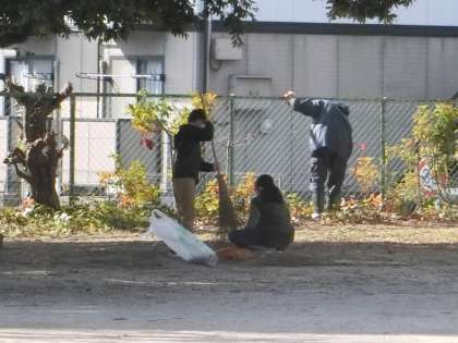 毎週火曜日は、竹ボラさんが児童たちのために学校の環境整備にきてくださいます。今日は南門の近くで、枝の集積作業をしていただきました。近くで掃除をしていた児童も枝拾いを手伝っていました。竹ボラさん、今日もありがとうございました。