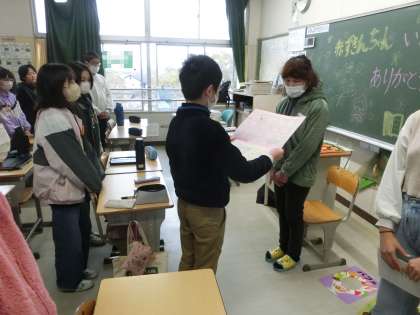 読み聞かせボランティアグループの「赤ずきんちゃん」による、今年度最後の読み聞かせが行われました。読み聞かせの最後には、各学級で感謝する会が行われ、児童たちの手作りの感謝状をお渡ししました。物語を通して、児童たちの感受性も豊かになっていきます。「赤ずきんちゃん」の皆様、児童たちのために毎月の読み聞かせをありがとうございました。